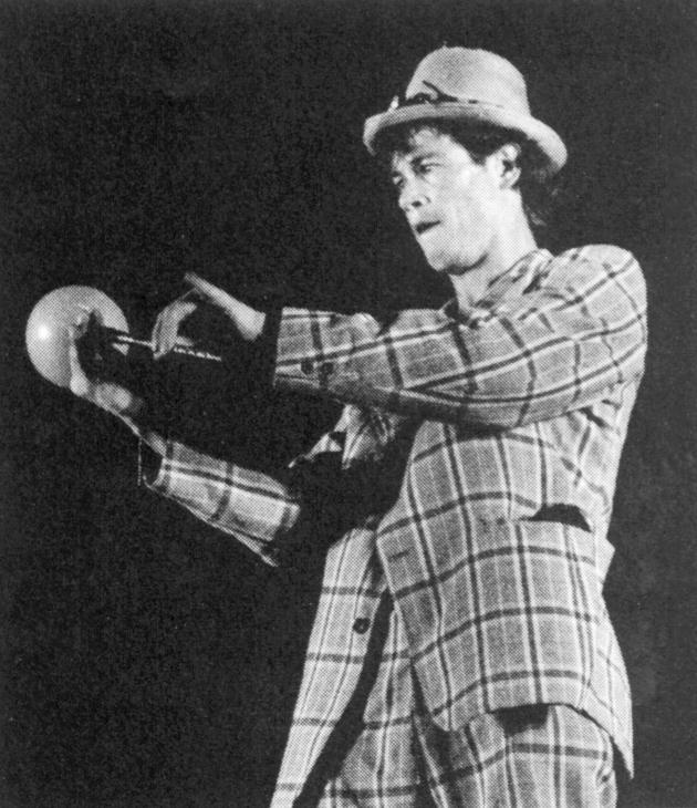 A pinball addict at age 15 who quit school at age 18 to juggle full-time, he speaks five European languages. He's recently joined with a fledgling circus, Parody Paradise, in Germany to present small ensemble circus-theatre around Europe. "I want to be free, perform, then do nothing the rest of the day," is a quote that captures his gypsy attitude. Some would call him debauched, and he has a jail record to support suspicions of a lifestyle on the fringe of proper society.