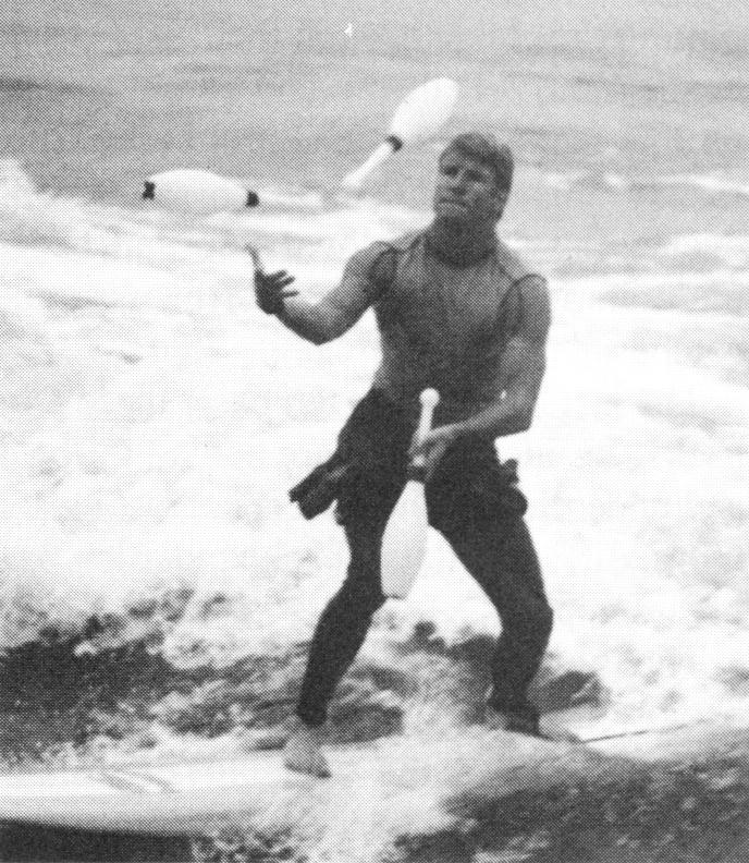 Other surfers have been supportive of his weekly show by letting him choose his waves and occasionally returning dropped clubs. "Where did you ever come up with that idea?" they ask him. His reply is a natural: "Jugglers have imagination!"