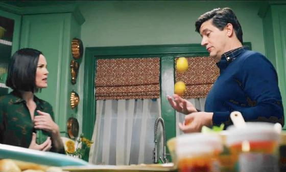 At 07:52, Ken Marino plays Archie, Cole's father, who juggles 3 lemons