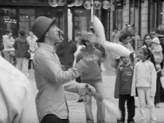 At 05:56, Daniel Forlano, credited as Daniel the Juggler, plays a street performer juggling 3 clubs. He is seen for about 90 seconds, but is only shown juggling for about 10 seconds.