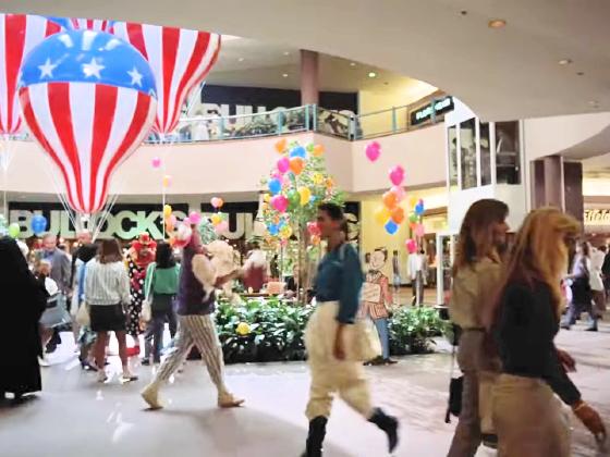 At 25:23, a clown casually walks through a shopping mall juggling 3 clubs for 7 seconds.