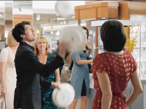 At 56:46, while in a store shopping for dinnerware, Patrick Dempsey juggles 3 plates.