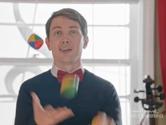 At 50:40, Matthew Stefanson plays someone auditioning for the upcoming Christmas concert, and is seen in 3 quick shots of about 2 seconds each, juggling 3 bean bags.