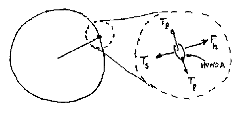 Figure 3.2 illustrates a blow-up of all the forces and tensions in the loop at and around the honda.