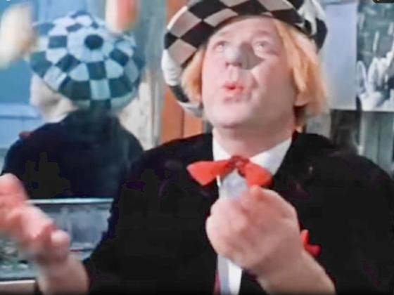 At 1:06:47, Oleg Popov, credited as Kloun, makes the final 4 catches of a 3 ball cascade.