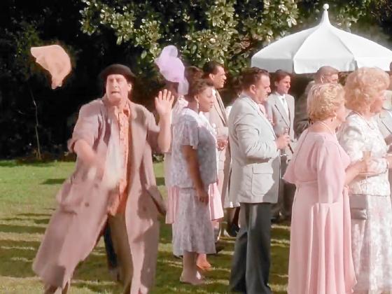 At 35:38, Bob Nelson does some juggling with 3 scarves for about 30 seconds during a dance scene.