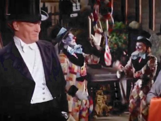At 1:37:20, while Julie Andrews, playing Lili Smith, is on stage singing, a peek backstage reveals George Paul and Rai Sanders dressed as clowns preparing to go on, with one juggling 3 rings and the other juggling 3 clubs, seen for 4 seconds.