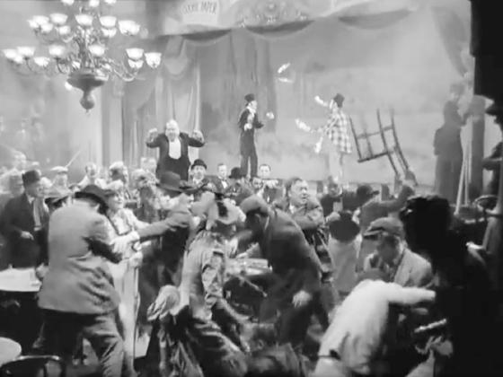 on a music hall stage for about 5 seconds during a brawl.