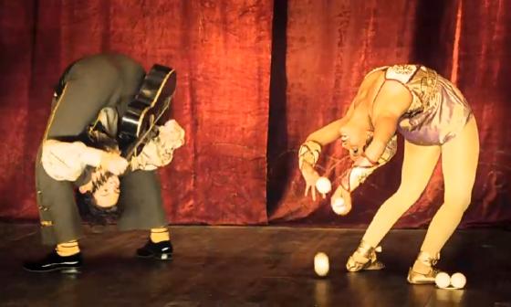 At 0:02:20, Sosina Wogayehu bounce juggles 3 balls while bent over backwards, also seen for just 2 seconds.