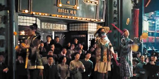 At 0:46:16, as the camera pans from right to left across a stage on the street, we see 3 Chinese performers. The first juggles 3 white plates, the second juggles 3 long red clubs, and the third juggles 3 orange balls, all for just 2 seconds.