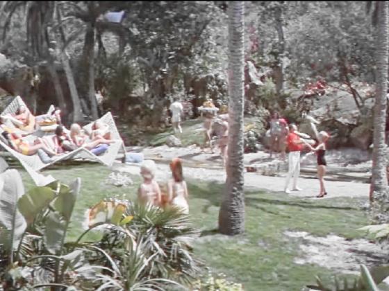 At 1:08:48, James Coburn, the hero of the film, walks past two jugglers who are practicing near a futuristic city. Carl Carlsson in a red shirt and white pants and Ruth Carlsson in a black swim suit are each juggling 3 clubs, but Ruth soon switches to a diabolo. This continues for about 3 minutes while also prominently featuring many dozens of girls walking around in bikinis.