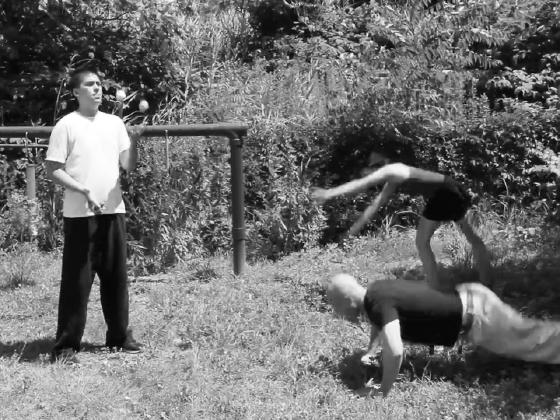 At 1:02:07, Michael Bedkowski Jr., credited as the Doomed Juggler, juggles 3 balls outdoors for 9 seconds, including 2 under-the-leg throws.