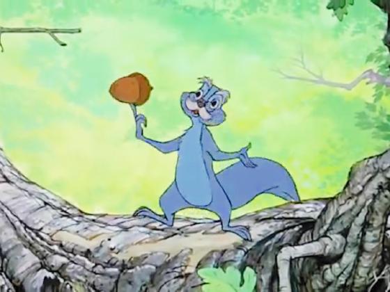 At 1:44:55, Merlin, transformed into a squirrel, does a brief one acorn juggling routine, including spinning it on his finger.